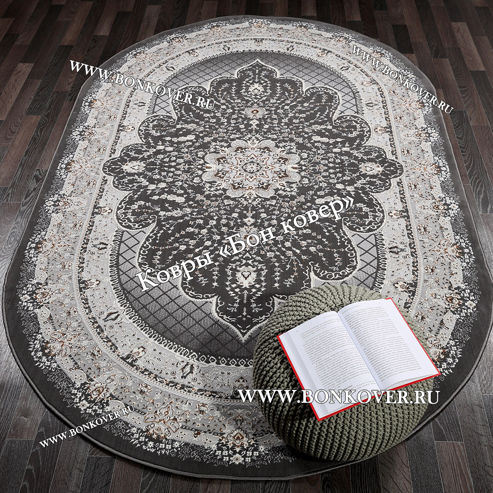 Ковер Для гостиной дизайн 68 Турция Серый Овал станет великолепным преображением вашей комнаты, подчеркивая высокий статус владельца.