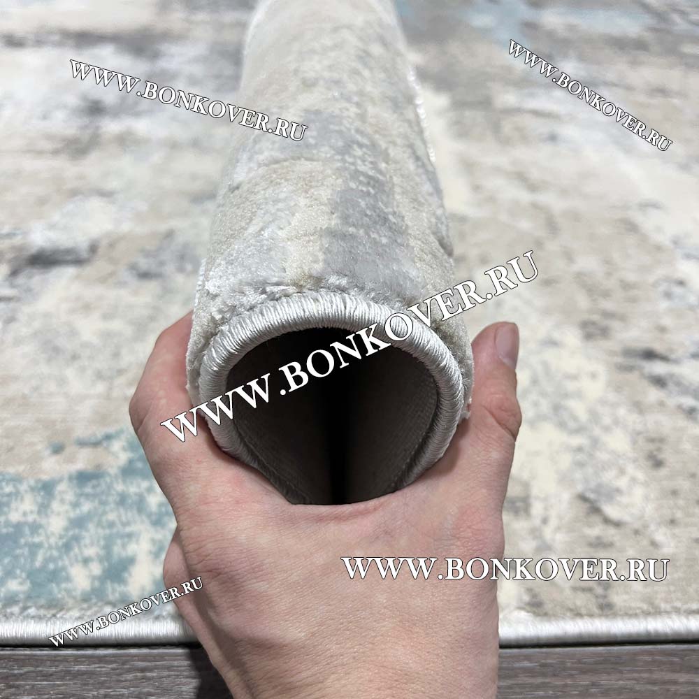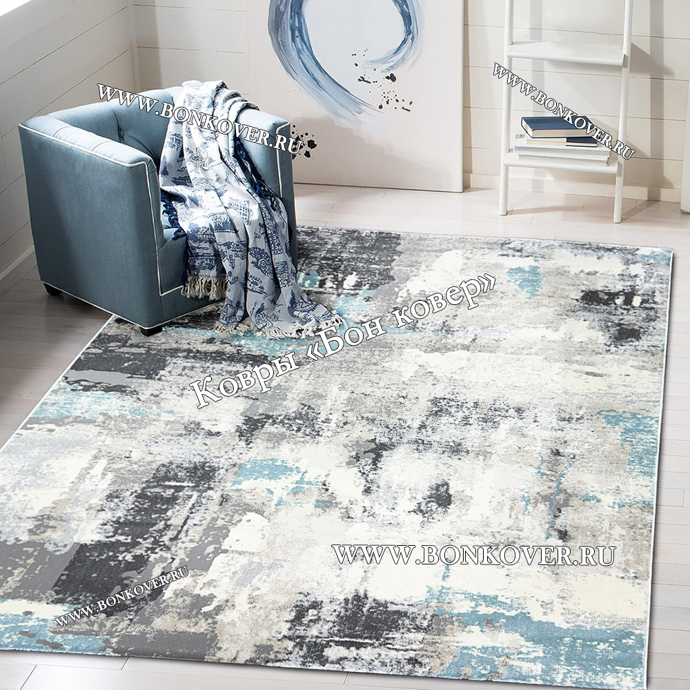 Изящный Ковер Турция Современный Дизайн 26 Серый с Голубым наполняет интерьер гостиной теплом и уютом, гармонично сочетает в себе изящество и красоту. Он соткан из экологически чистого сырья, комфортный и долговечный.