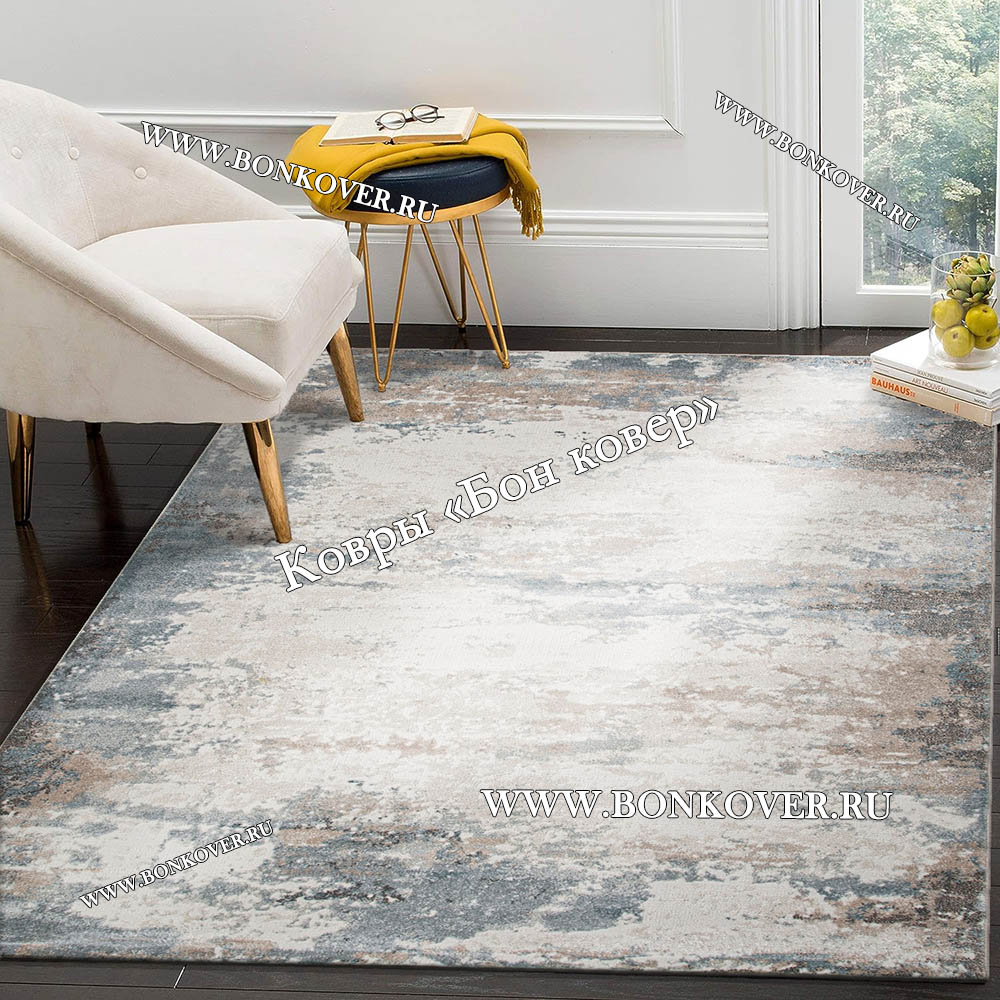 Шикарный Синий с бежевым современный ковер дизайн 26959 наполняет интерьер жилого пространства теплом и уютом, гармонично сочетает в себе изящество и красоту. Он создан из износостойких материалов, комфортный и долговечный.