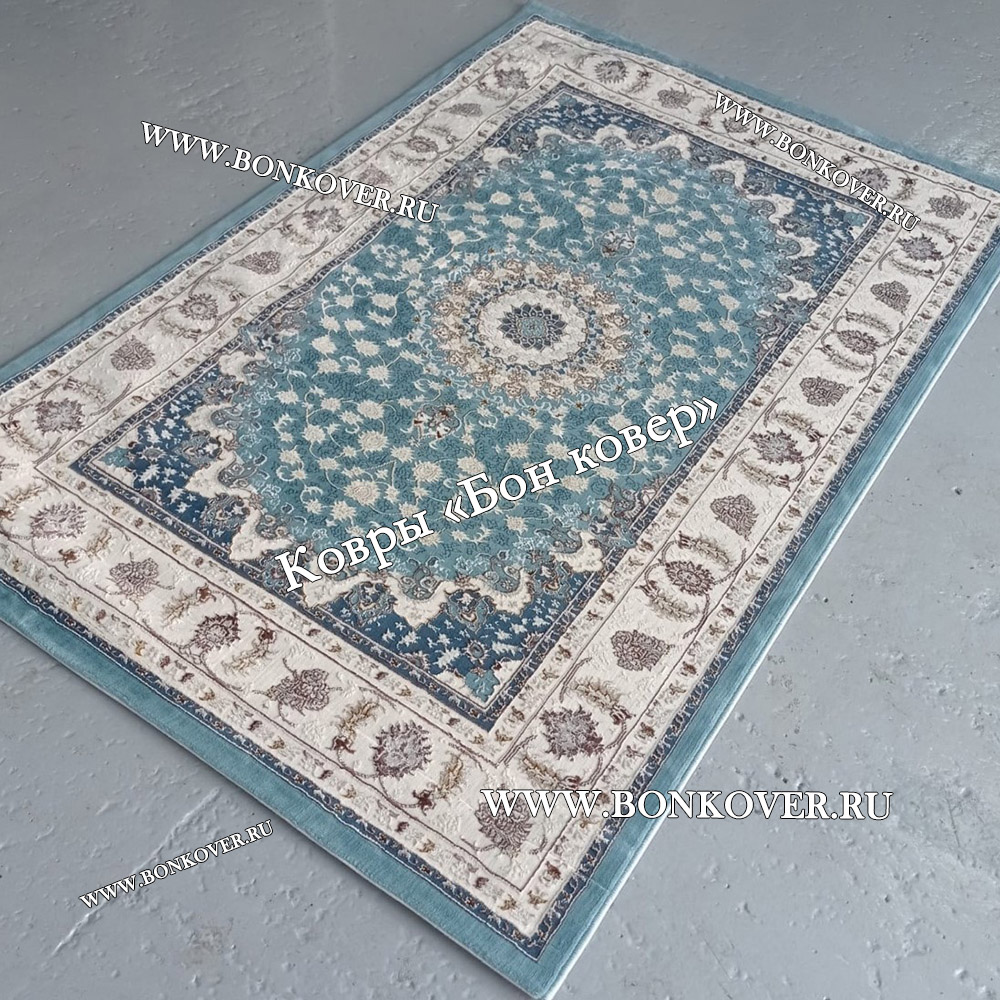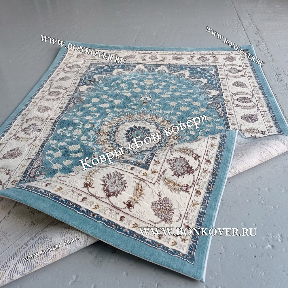 Турецкий Ковер Для гостиной New дизайн 99 Голубой станет превосходным дополнением интерьера, оформленного в современном или классическом стиле. Мягкое, но прочное, ковровое изделие обеспечивает тепло- и шумоизоляцию, отличается длительным сроком эксплуатации, пожаробезопасностью, экологичностью и высокой износостойкостью, является отличным противодействием от повышенной влажности в комнате и утеплителем для холодного пола. Благодаря качеству материалов, ковер не деформируется, сохраняет форму под тяжестью предметов мебели. За его поверхностью легко ухаживать.